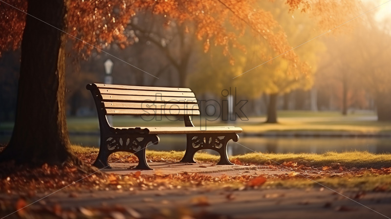 A wooden bench in an autumn park