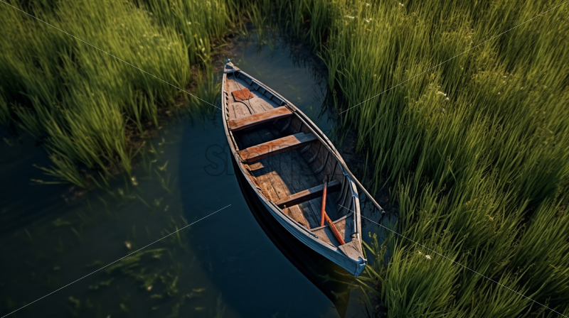 Aerial drone panoramic view of nature in Romania. Valley in Carpathian mountains with Vidraru lake, floating boat, green slopes around