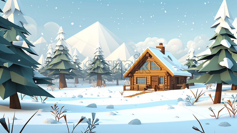 A wooden house in the forest in winter with smoke coming out of the chimney