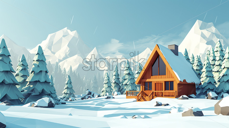 A wooden house in the forest in winter with smoke coming out of the chimney