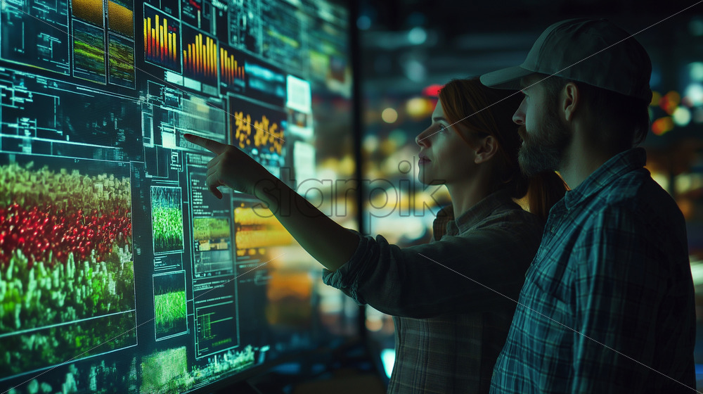 A futuristic greenhouse illuminated by quantum sensors, where plants grow in glowing