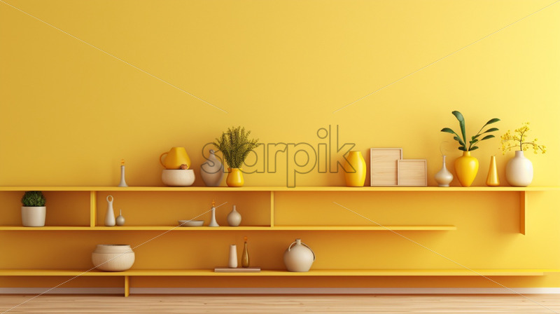 Home » Shop » Uncategorised » A yellow wall with wood shelves