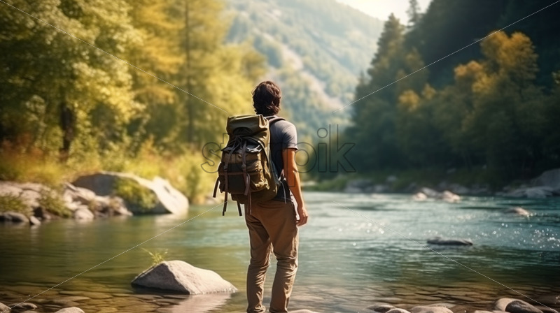 A couple talking, hugging and entering a transparent bubble tent at glamping, view from a drone. Lush forest around Download royalty free stock video footage Royalty Free Stock Video Footage