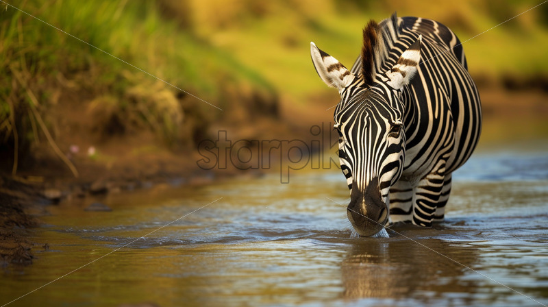 A zebra drinking water from the river