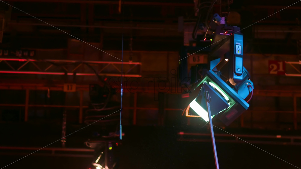 Adjusting barn doors of the professional light with a metal pipe in a television studio Royalty Free Stock Video Footage