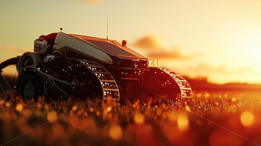 A concept art of a solar-powered quantum irrigation system, distributing water through glowing pipelines