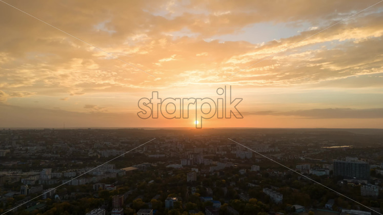Aerial drone hyperlapse timelapse of sunset above Chisinau. Moldova Royalty Free Stock Video Footage