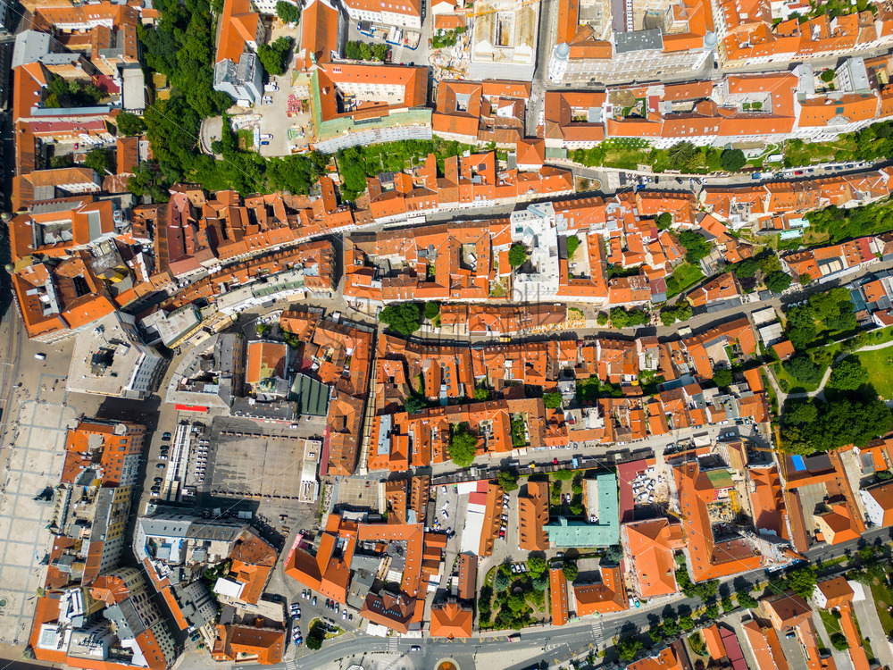 Home » Shop » photo » Aerial drone vertical view of Zagreb, Croatia. Historical city centre with multiple old buildings made in national style