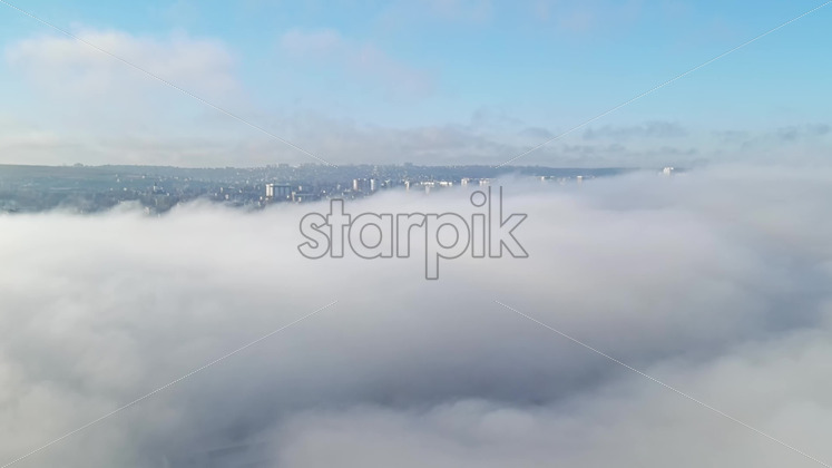 Aerial drone view above the clouds with buildings visible through, Chisinau, Moldova Royalty Free Stock Video Footage Royalty Free Stock Video Footage