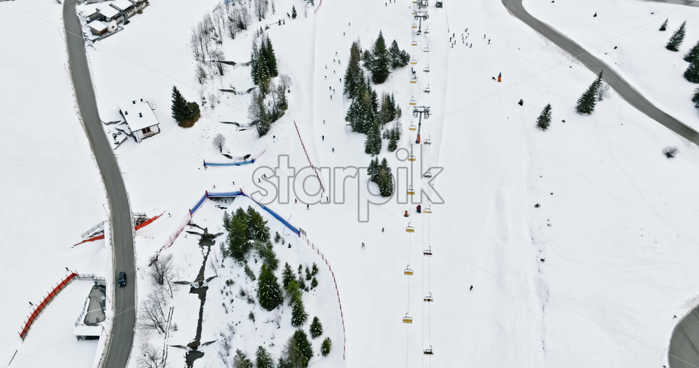 Corvara in Badia, Italy – January 11, 2025: Aerial drone view of a ski lift in Corvara, in South Tyrol, the Dolomites Royalty Free Stock Video Footage