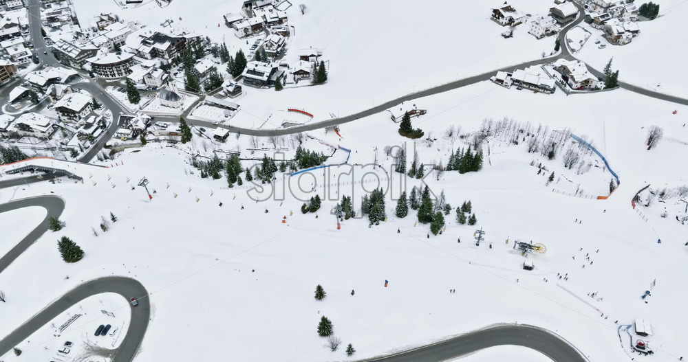 video Aerial drone view of people at a ski resort in Corvara in Badia covered in snow, in South Tyrol, the Dolomites
