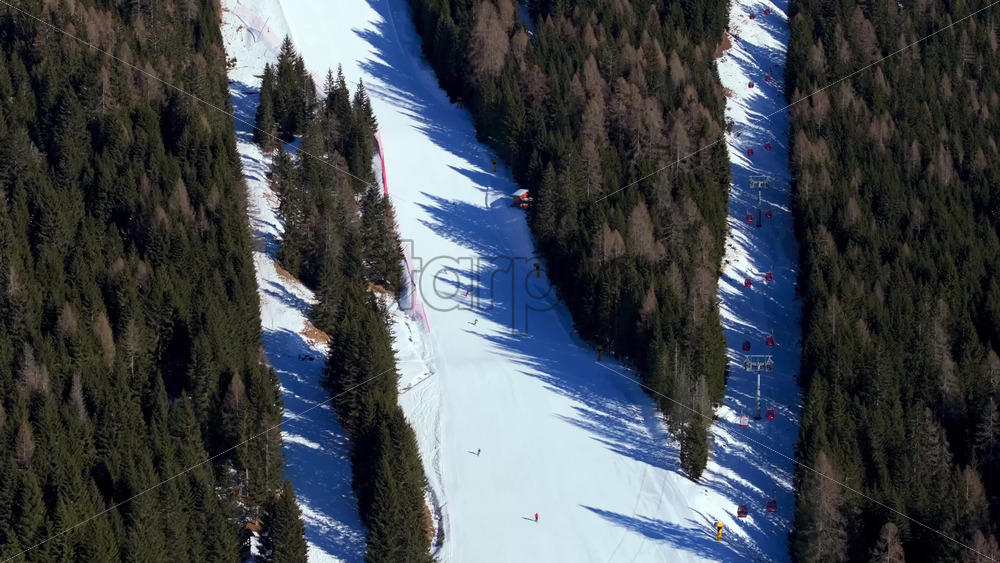 Aerial drone view of a ski resort in Piani di Pezze, Alleghe, Province of Belluno, in the Dolomites, Italy in daylight Royalty Free Stock Video Footage