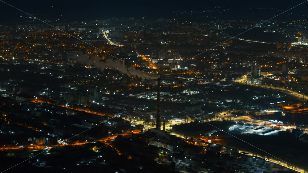 Aerial drone view of Chisinau city covered in snow in the night. Blue hour during winter in Moldova Royalty Free Stock Video Footage