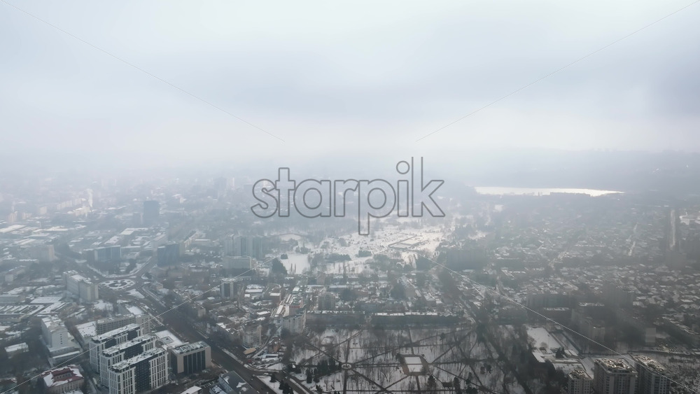 Aerial drone view of Chisinau city covered in snow. Winter in Moldova Royalty Free Stock Video Footage
