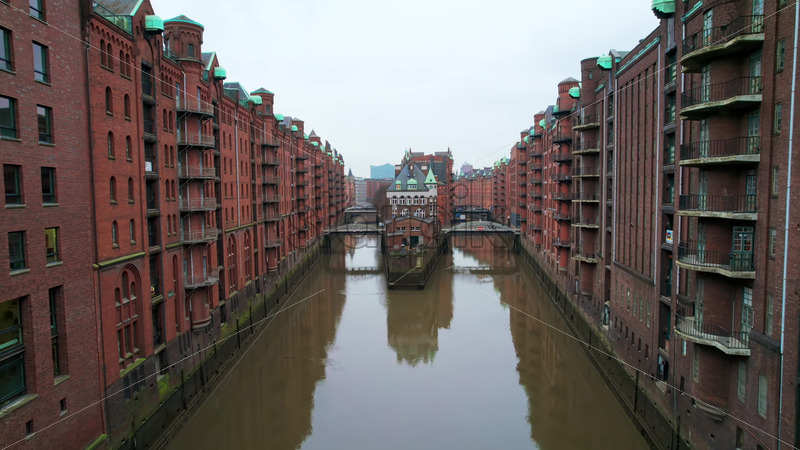 Aerial drone view of Hamburg city and port with harbour, Germany, Speicherstadt Royalty Free Stock Video Footage