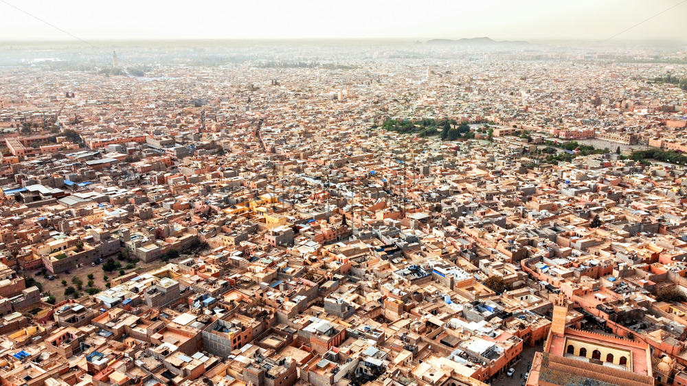 Home » Shop » photo » Aerial drone view of Marrakesh, Morocco. View of multiple old residential buildings made in national style