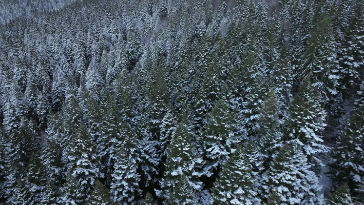 Aerial drone view of mountains fir trees in snow Royalty Free Stock Video Footage