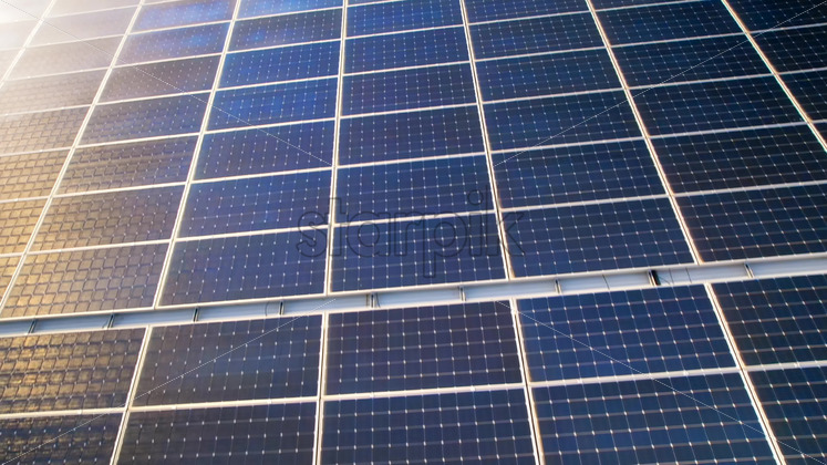 Aerial drone view of multiple solar panels on the roof of a manufacturing building in nature. Ecology thematics Royalty Free Stock Video Footage