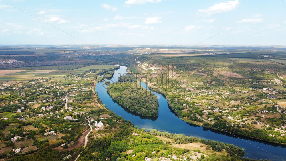 Home » Shop » photo » Aerial drone view of nature in Moldova. Dniester river with an island, villages and a lot of greenery around