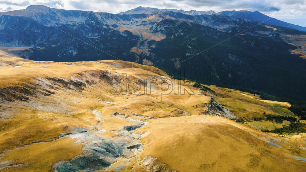 Aerial drone view of nature in Romania. Carpathian mountains, sparse vegetation