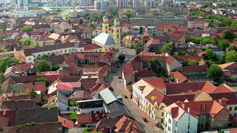 Aerial drone view of Oradea downtown, Romania. Cityscape with multiple historical buildings made in classic style Royalty Free Stock Video Footage