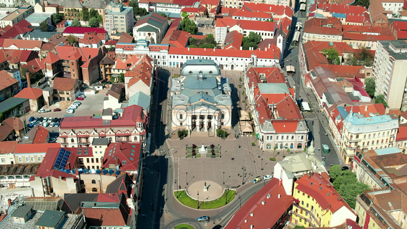 Aerial drone view of Oradea downtown, Romania. State Theatre with square in front of it and historical buildings around Royalty Free Stock Video Footage