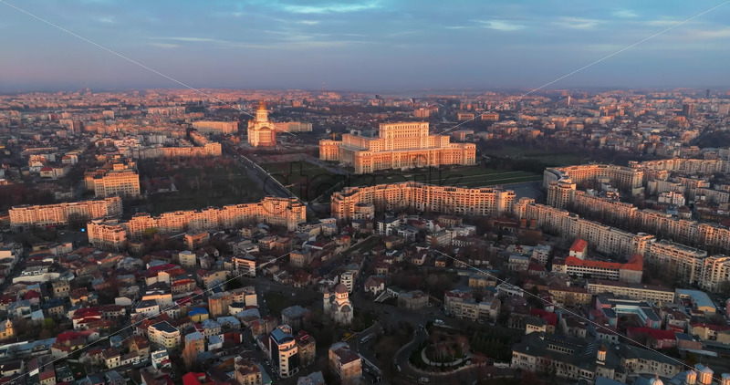 Home » Shop » 1 Video » Video – Aerial drone view of Palace of the Parliament in Bucharest downtown at sunset. Romania