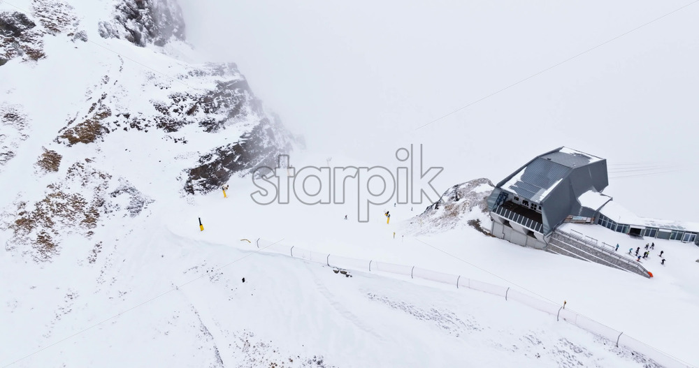 Aerial drone view of Portavescovo covered in snow, in Arabba, Italy Royalty Free Stock Video Footage