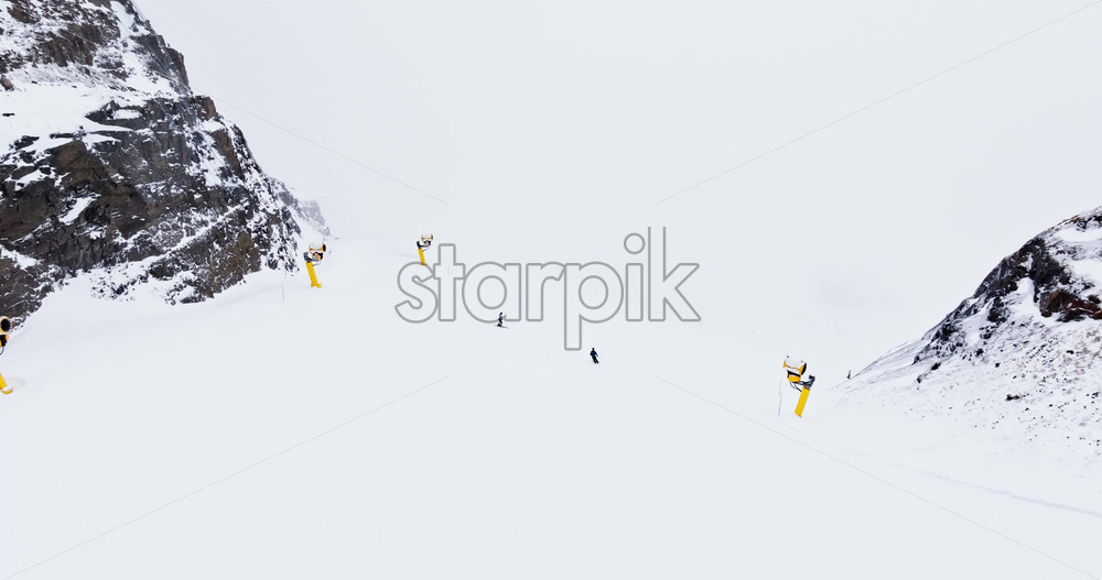 Aerial drone view of Portavescovo covered in snow, in Arabba, Italy Royalty Free Stock Video Footage