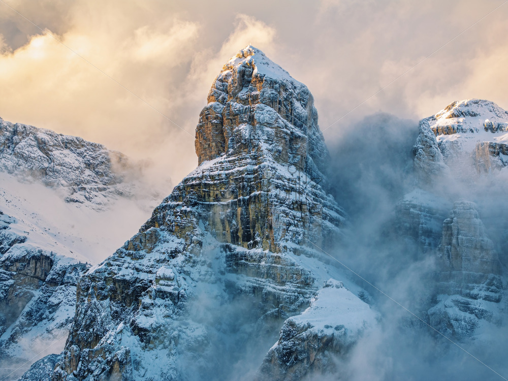 Home » Shop » photo » Aerial drone view of snow on the mountains in the Dolomites, Italy