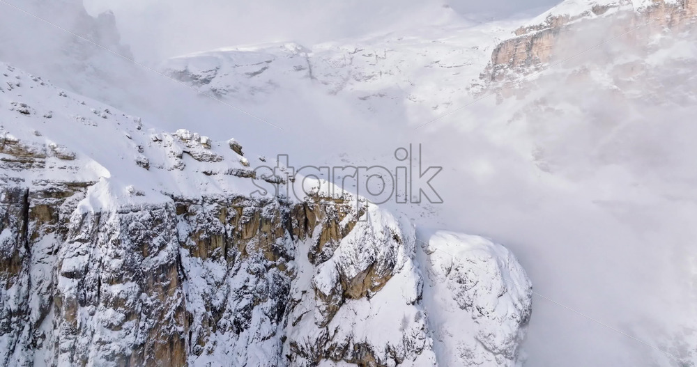 Home » Shop » 1 Video » Video – Aerial drone view of snow on the Sassongher mountain in the clouds, in the Dolomites, Italy