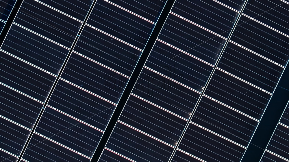 Aerial drone view of solar panels. Photovoltaics on top of the roof of the building. Alternative electricity source. Concept of sustainable resources Royalty Free Stock Video Footage