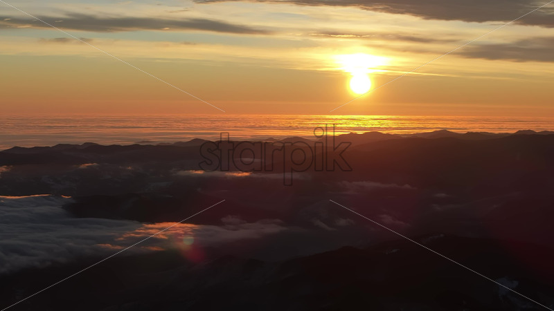 Aerial drone view of sunset in the mountains. Ceahlau National Park, Romania Royalty Free Stock Video Footage