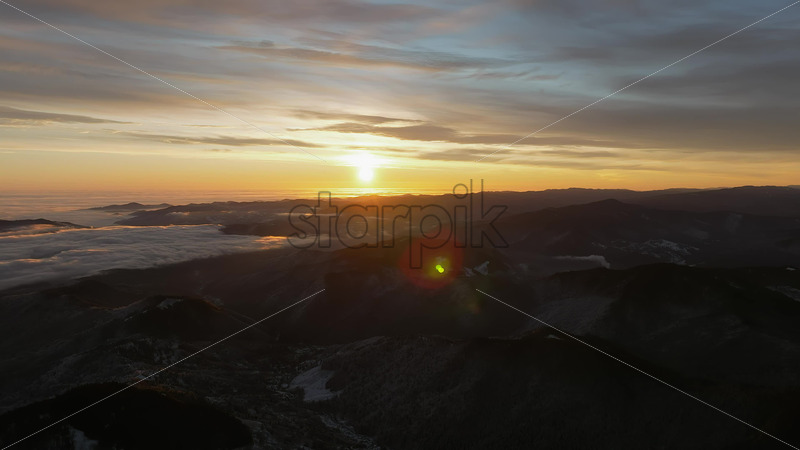 Aerial drone view of sunset in the mountains. Ceahlau National Park, Romania Royalty Free Stock Video Footage