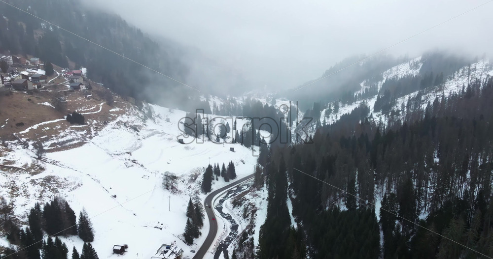 Corvara in Badia, Italy – January 12, 2025: Aerial drone view of the Corvara village covered in snow, in South Tyrol, Dolomites, in northern Italy Royalty Free Stock Video Footage