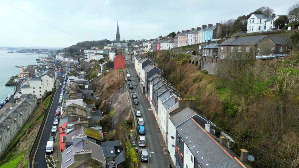Aerial drone view of the colourful houses in Cobh, Cork, Ireland Royalty Free Stock Video Footage