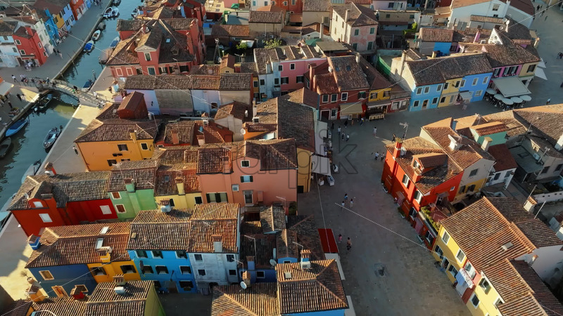 VIDEO Aerial drone view of the colourful houses of Burano Island, Italy Royalty Free Stock Video Footage