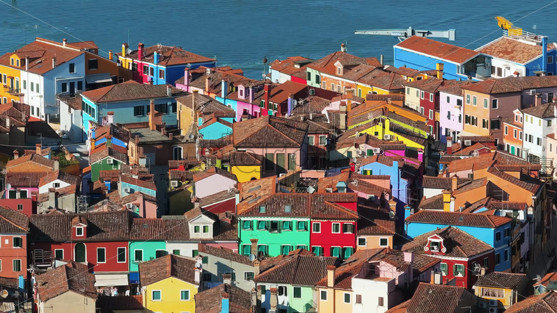 Aerial drone view of the colourful houses of Burano Island, Italy Royalty Free Stock Video Footage