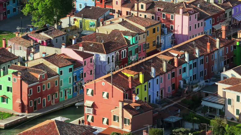 VIDEO Aerial drone view of the colourful houses of Burano Island, Italy Royalty Free Stock Video Footage