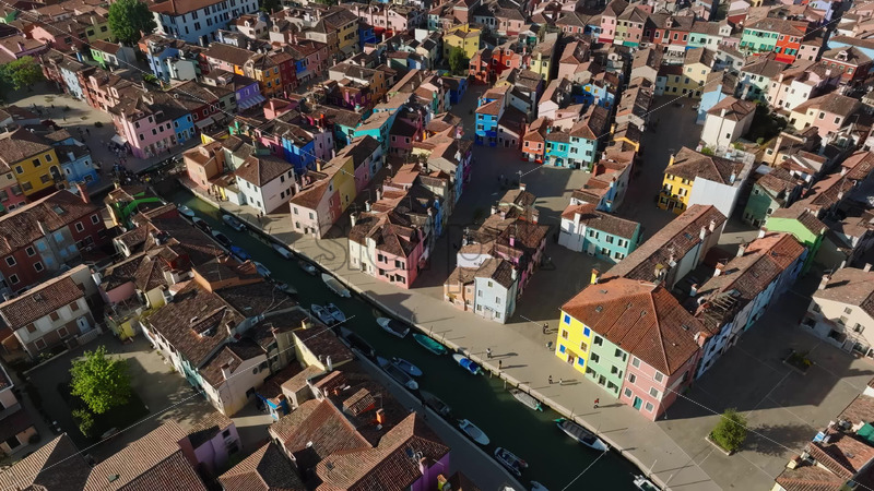 Aerial drone view of the colourful houses of Burano Island, Italy Royalty Free Stock Video Footage