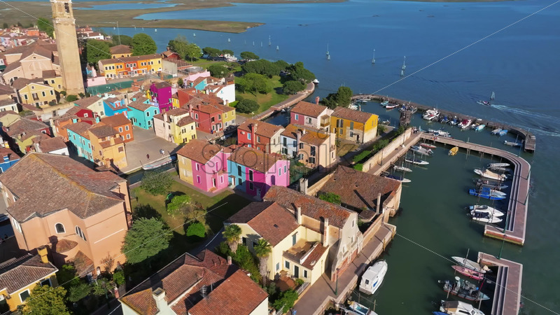 Aerial drone view of the colourful houses of Burano Island, Italy Royalty Free Stock Video Footage