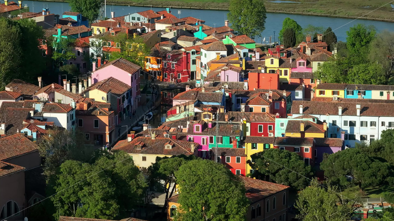 VIDEO Aerial drone view of the colourful houses of Burano Island, Italy Royalty Free Stock Video Footage