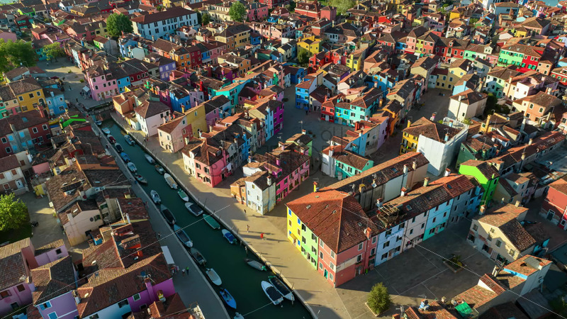 VIDEO Aerial drone view of the colourful houses of Burano Island, Italy Royalty Free Stock Video Footage