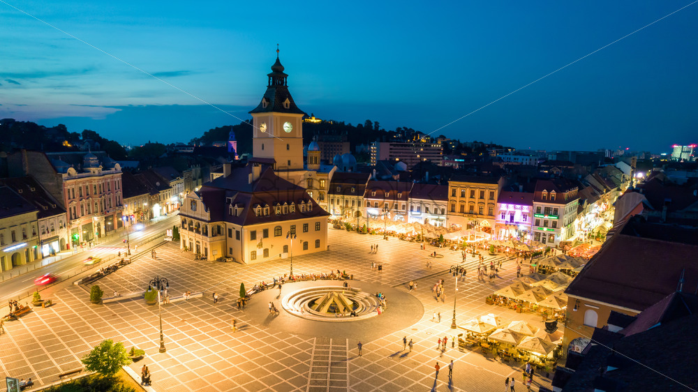 Home » Shop » photo » Aerial drone view of The Council Square in Brasov at night, Romania