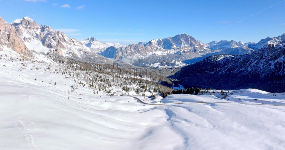 Belluno, Italy – January 12, 2025: Aerial drone view of a sportsman snowkiting on the Giau Pass in the Dolomites, Italy Royalty Free Stock Video Footage