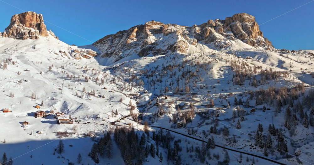 Belluno, Italy – January 12, 2025: Aerial drone view of a sportsman snowkiting on the Giau Pass in the Dolomites, Italy Royalty Free Stock Video Footage