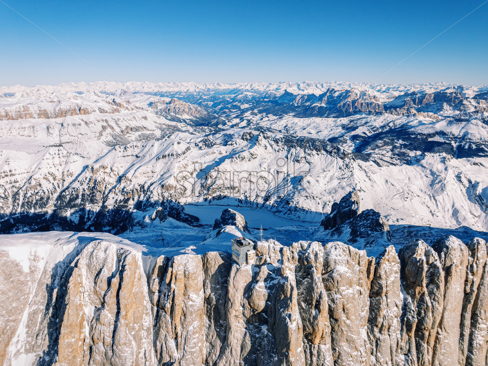Home » Shop » photo » Aerial drone view of the Marmolada mountain in the Dolomites, northeastern Italy with the blue sky on the background