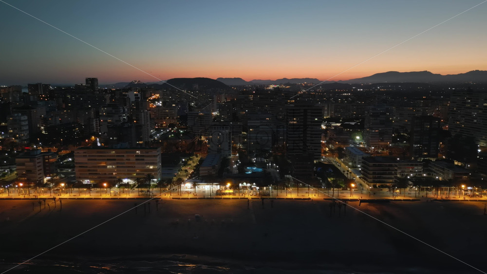 Aerial drone view of the Mediterranean Sea and the Alicante city in Spain at sunset Royalty Free Stock Video Footage