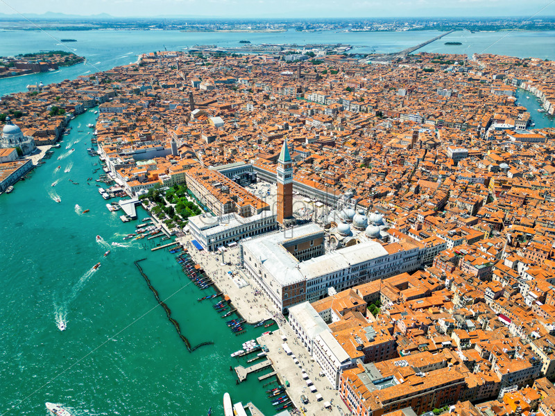 Home » Shop » city » Aerial drone view of Venice, Italy. Water channels with multiple floating and moored boats, historical city centre with St Mark’s Square and other old buildings and narrow streets