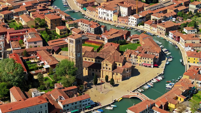 Aerial drone view of VIDEO Basilica dei Santi Maria e Donato in Venice City, Italy in daytime Royalty Free Stock Video Footage
